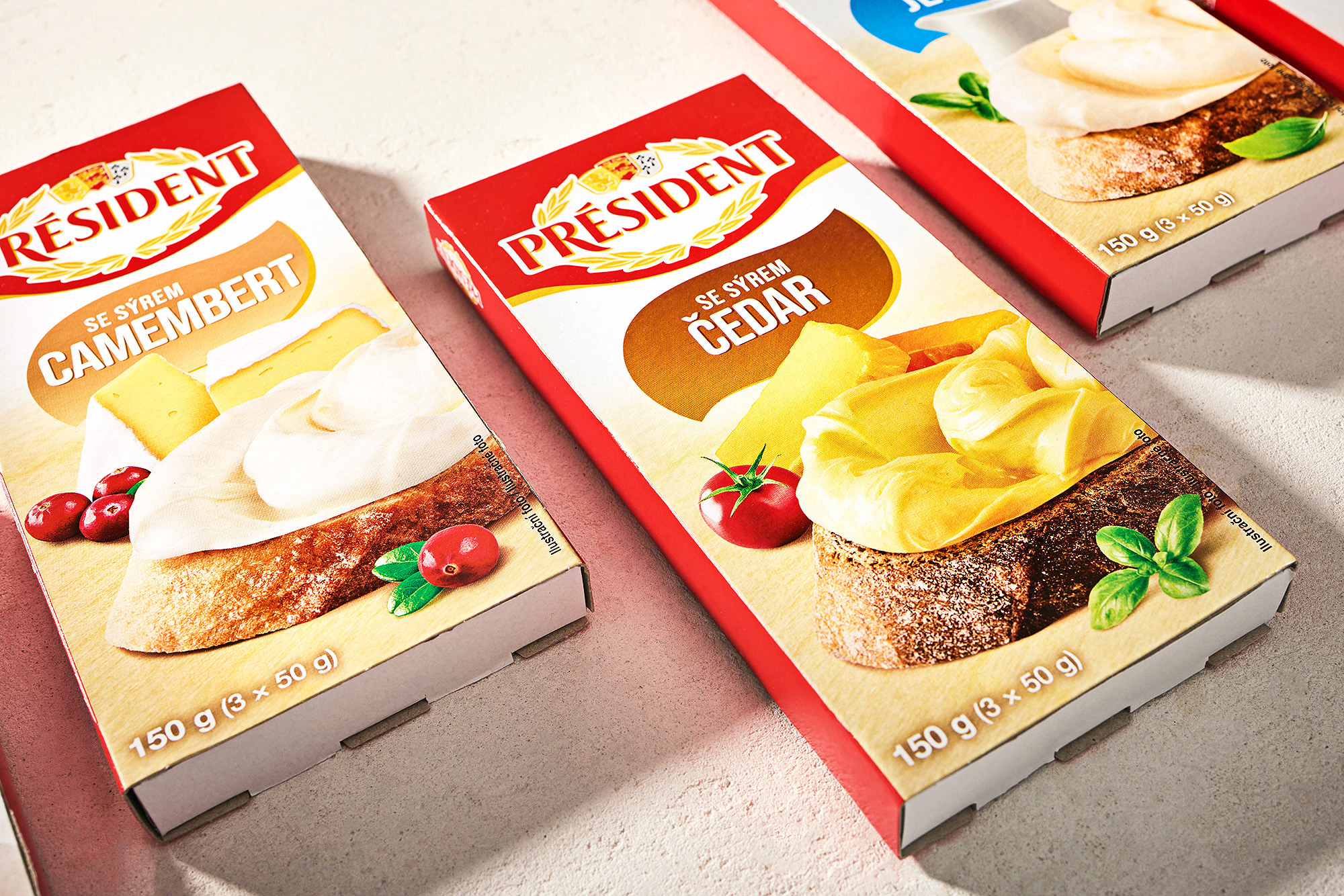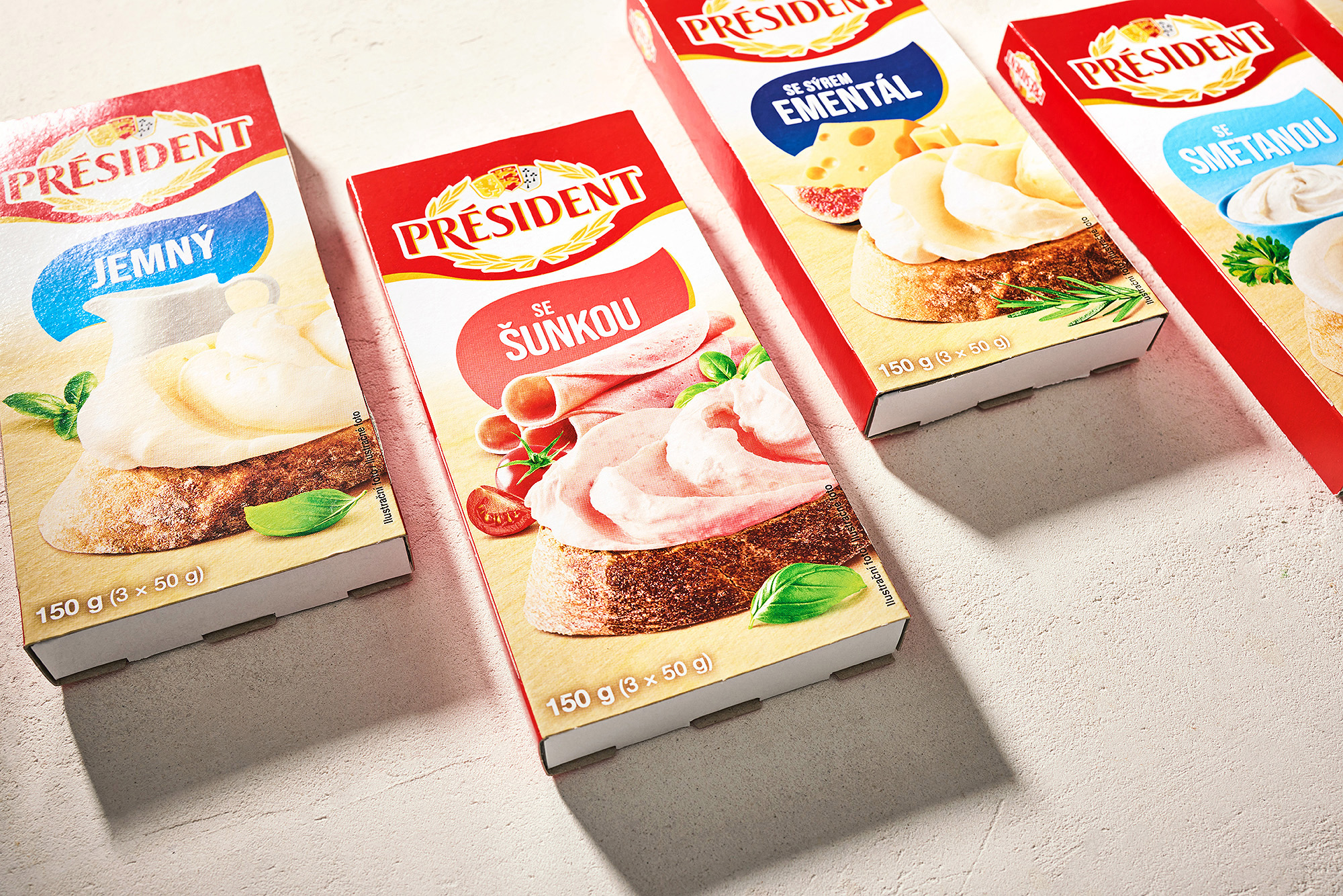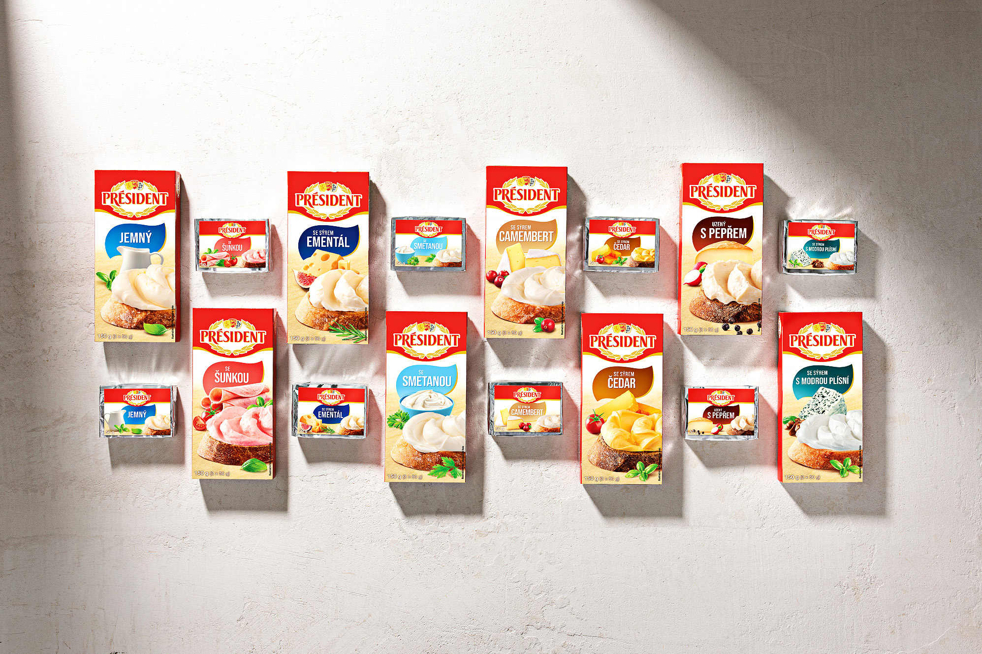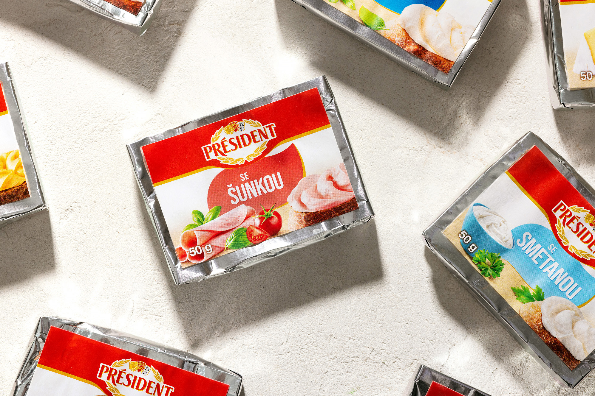 Voor het merk Président hebben we een complete visuele set verpakkingen voor een reeks smeltkazen ontworpen. Het project omvatte foodstyling, productfotografie en grafisch ontwerp en bewerking van aanpassingen voor een reeks van acht hoofdverpakkingen.